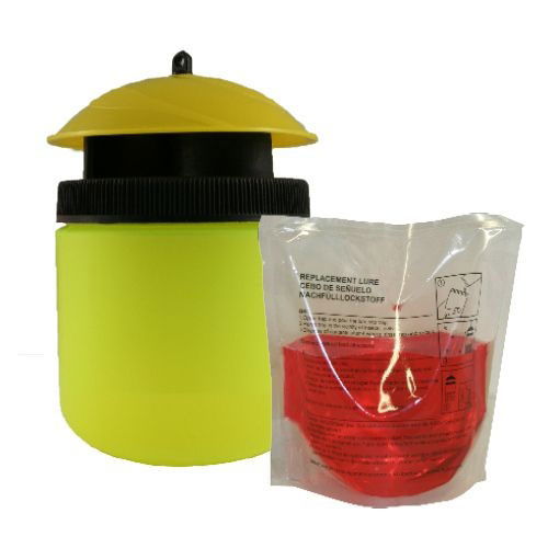 Easy to set up, liquid lure is simply poured into the trap body. Can be hung or placed upon a solid surface.