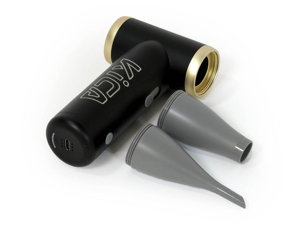 The KiCA Jet Fan 2 rechargeable electronic air duster is completely adjustable and can be combined with Museum Vac mini adapter tools for versatile cleaning.
