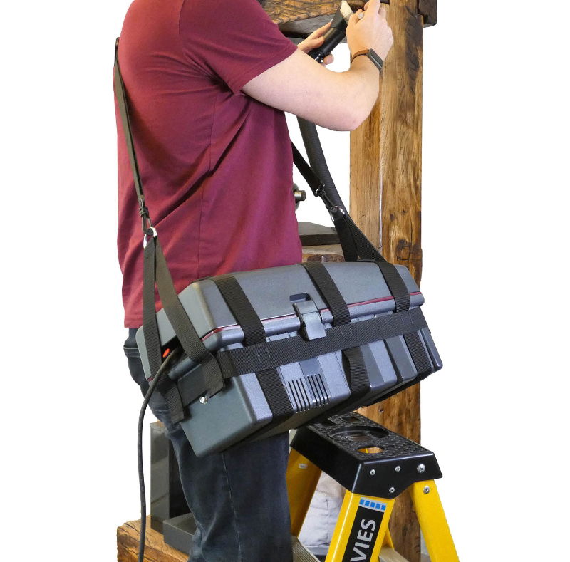 Museum Vac carrying harness has been specifically designed to carry the Museum Vac models 561-1990 and 561-3000. The padded shoulder strap enables the vacuum to be used totally hands-free, when working at height or not in a studio environment.