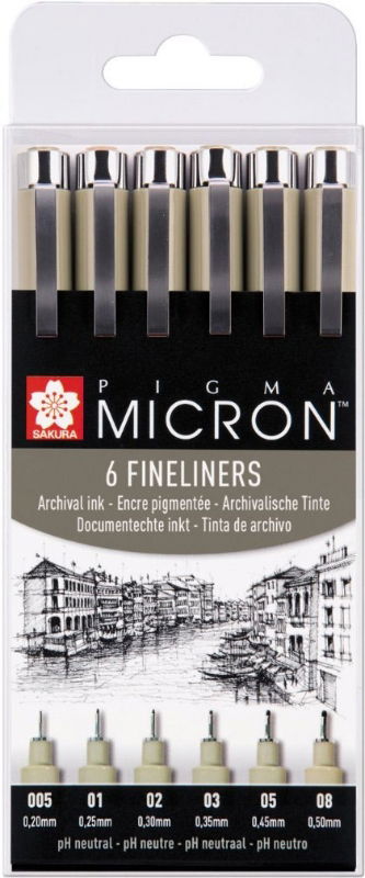 Archival acid-free ink pens, Sakura Pigma Micron pens are the first generation of technical pens using the pigment Ink Process. The acid free and archival quality Pigma ink was developed specifically for museum professionals, archivists, librarians and conservators.