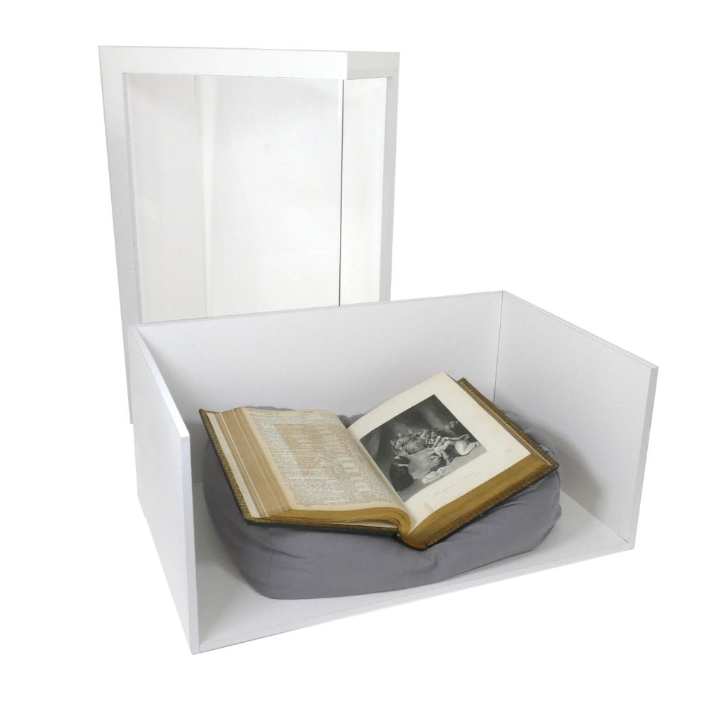 Portable display box is a lightweight, heavy-duty, honeycomb board box with a large acrylic window for temporary display of items. Optional display shelves or our Norfolk Book Sofas are available for additional display & support possibilities. Take your objects to classrooms and presentations without risking accidental damage or vandalism.