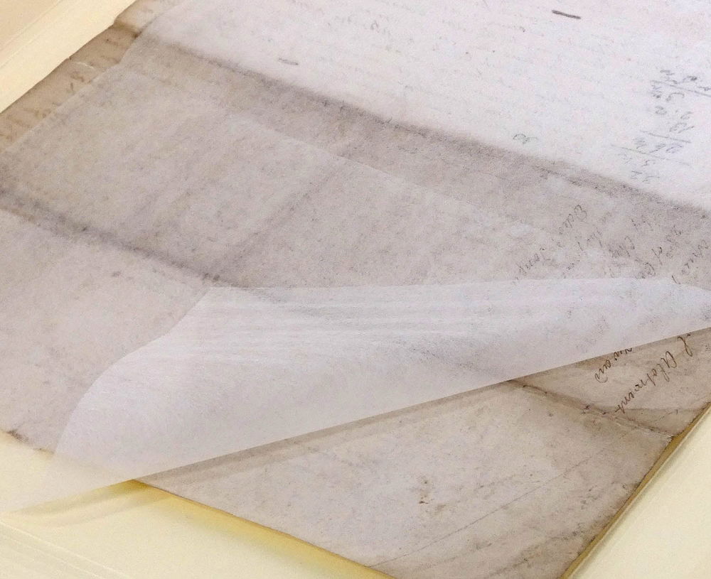 - Place a piece of non-woven polyester over the repair and lightly burnish with a bone folder for adhesion.